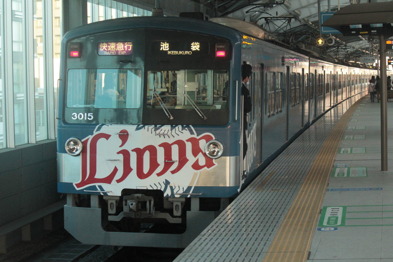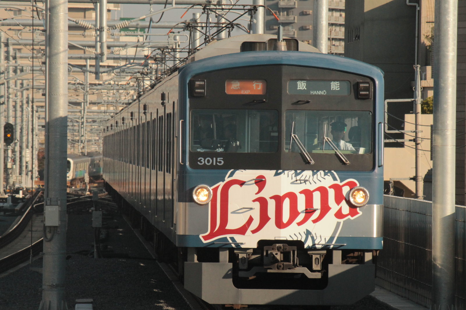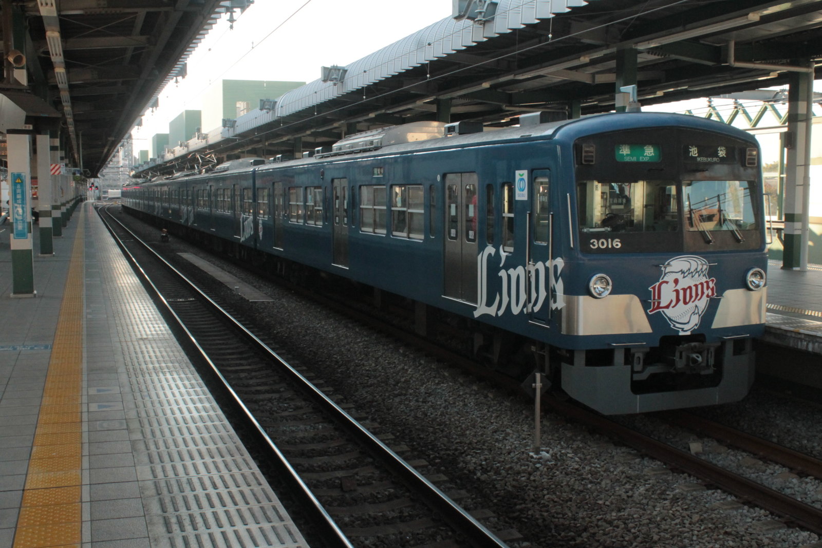 3000系といえば、数少ない3ドアの西武の車両で8両編成で走ることが多い。今日は、銀河鉄道999ラッピング車両、埼玉西武ライオンズ車両がともに大活躍をしていた。