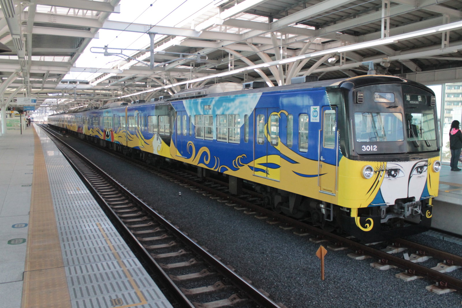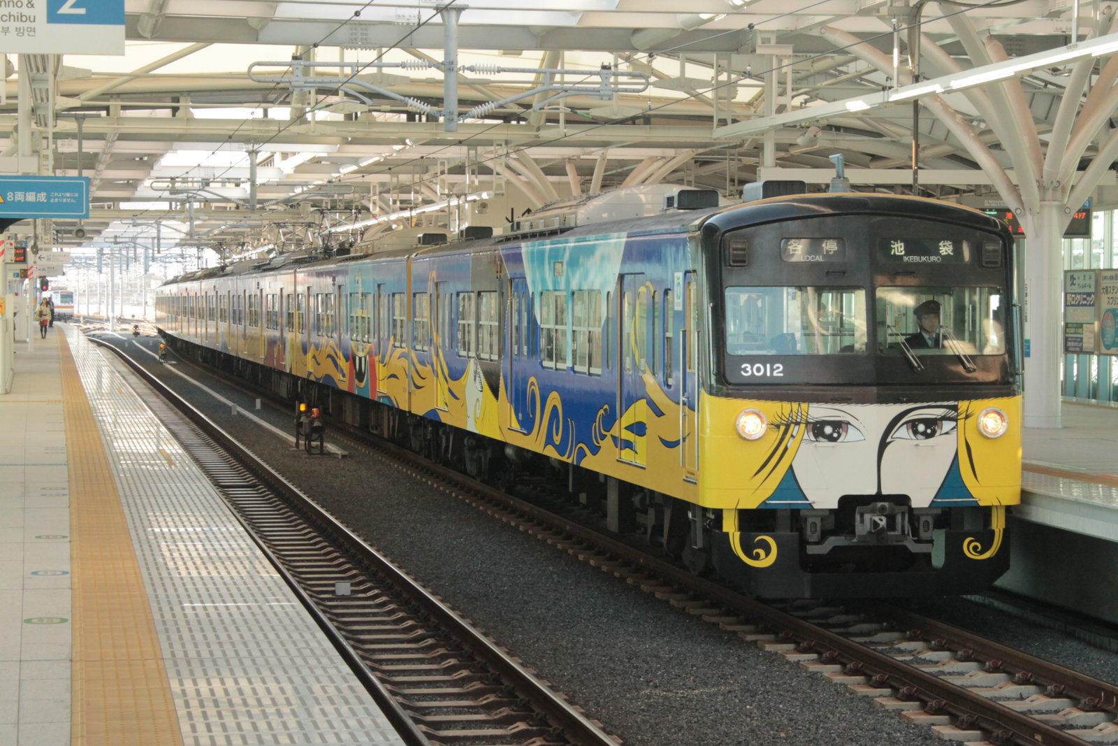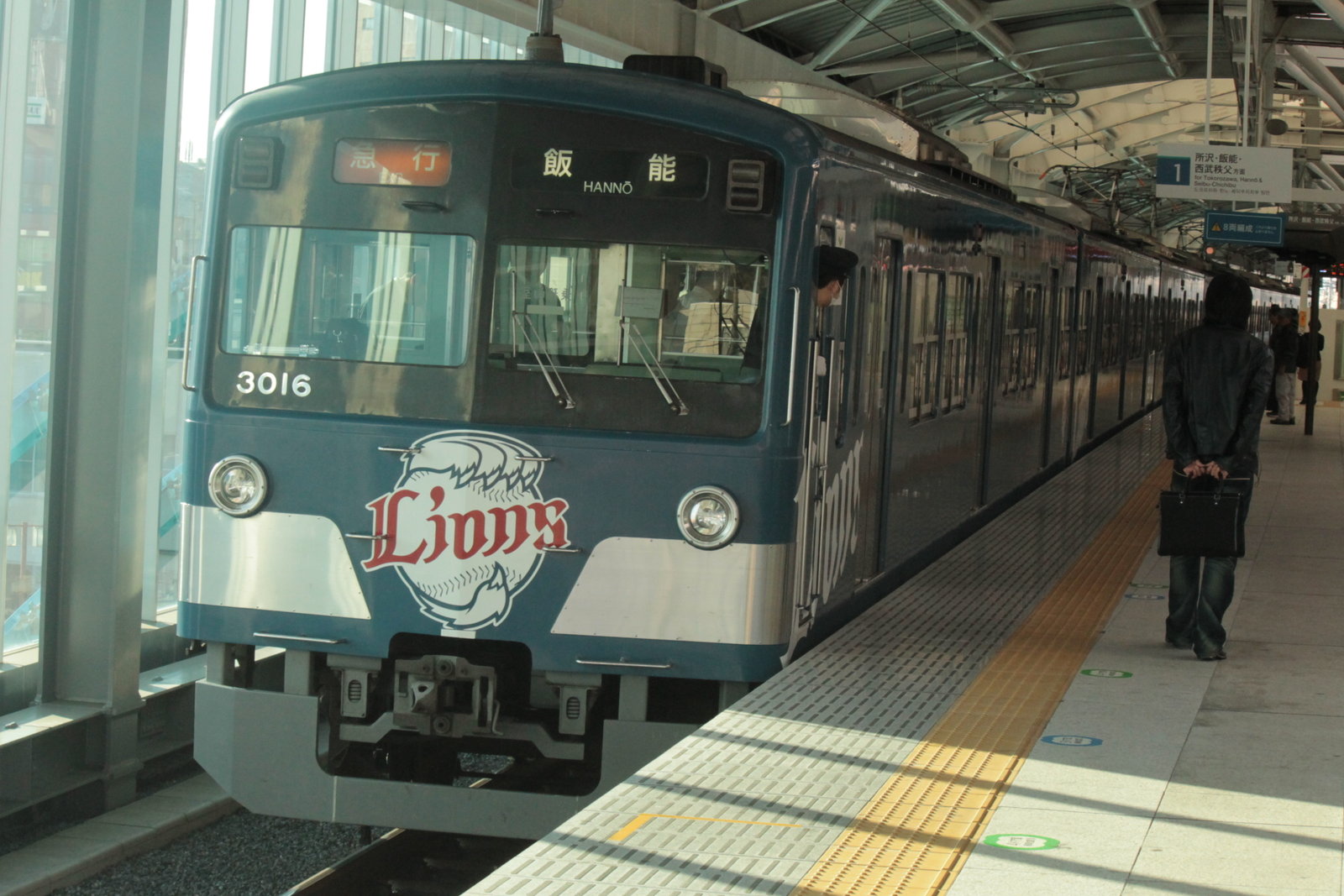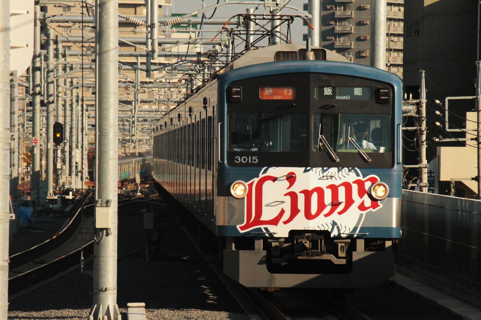 3000系といえば、数少ない3ドアの西武の車両で8両編成で走ることが多い。今日は、銀河鉄道999ラッピング車両、埼玉西武ライオンズ車両がともに大活躍をしていた。