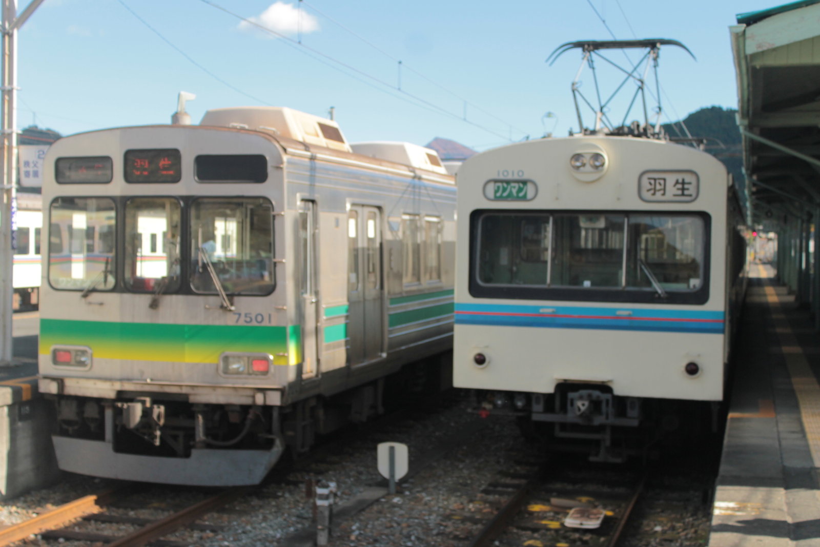 列車は荒川の上流へと動いている。武甲山の裏の姿が見えてきた。これをバックにどこかで撮影をしたいと思った。しかし目指したのは、三峰口駅だった。三峰口駅には水色の1000系もいた。この塗装はまだ残っていたのか!まだELまでは時間があるからだ。三峰口駅では少し時間があったので、駅の近くの荒川の白川橋へと向かう。