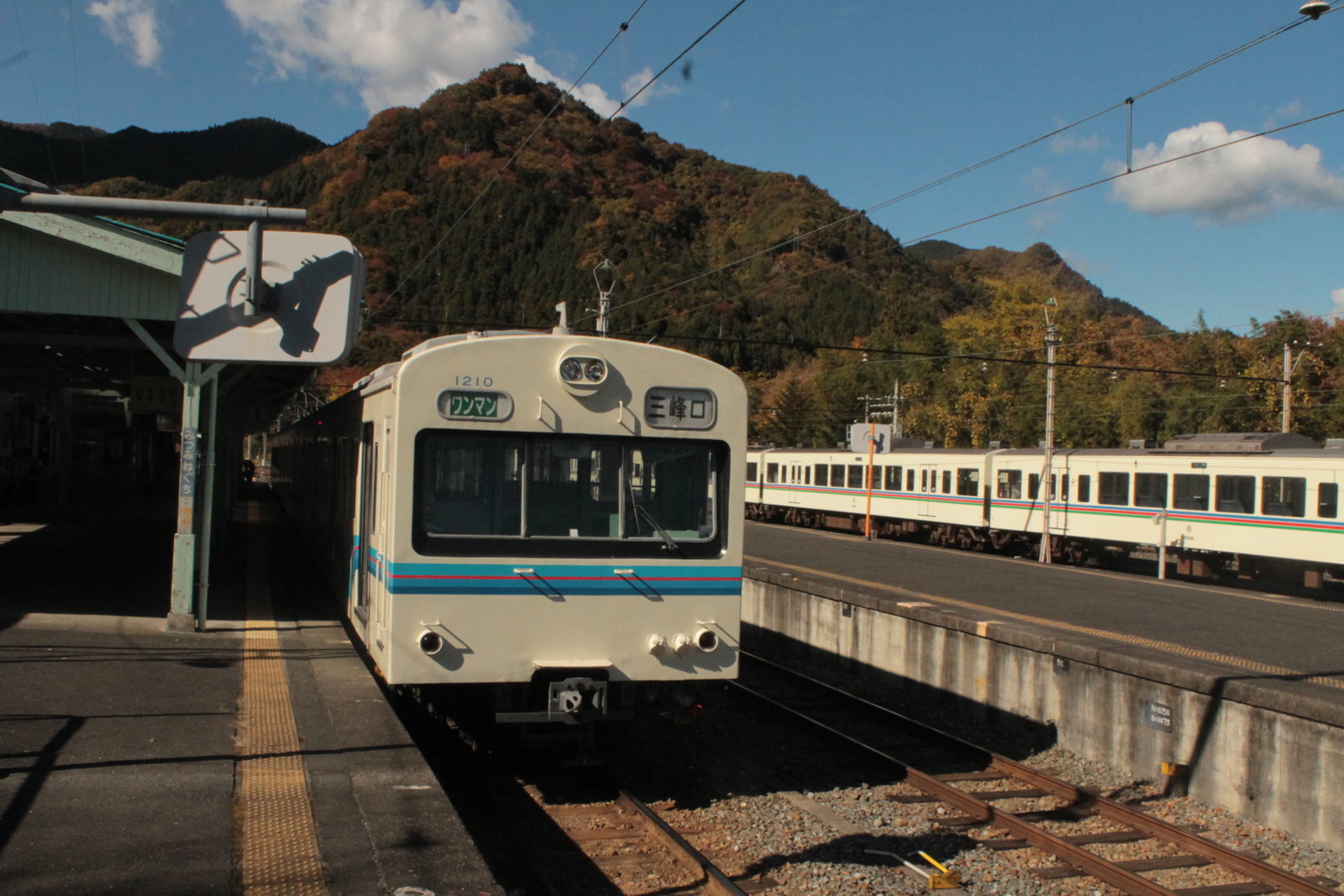 飯能駅を過ぎたあたりから私の大好きな山間部の区間に入る。紅葉が始まっていた。秩父の山々は紅葉になるのが少し早いようだ。今日は絶好の紅葉を期待をしたくなってきた。キレのあるモーターの音で秩父の山を越えるその姿は好きだ。正丸トンネルを越えれば、ここは秩父の入り口だ。今日は良い写真が作れると期待ができそうだ。横瀬駅に停車をし、西武秩父駅へと向かう。横瀬駅では2000系が止まっていたが、池袋からの快速急行ではないかと思われる。