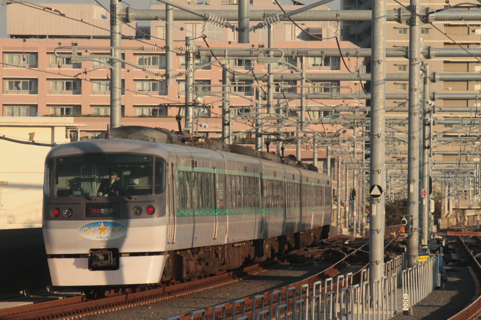 続いて、緑色の帯の入ったレッドアロー。 これは星のあるまち秩父長瀞のラッピング車両だそうだ。長瀞にある宝登山神社がフランスのミシュランガイドに載ったのが利用だそうだ。この車両は、過去に一度だけ見たことがあったが、このような車両とは知らなかった。名鉄のような環境を重視をした車両かと思った・・・