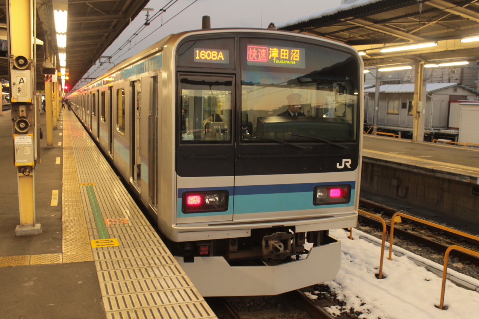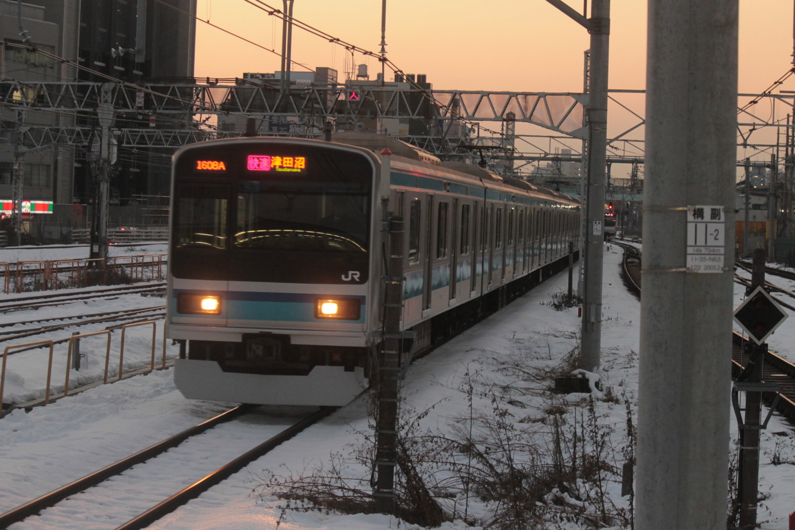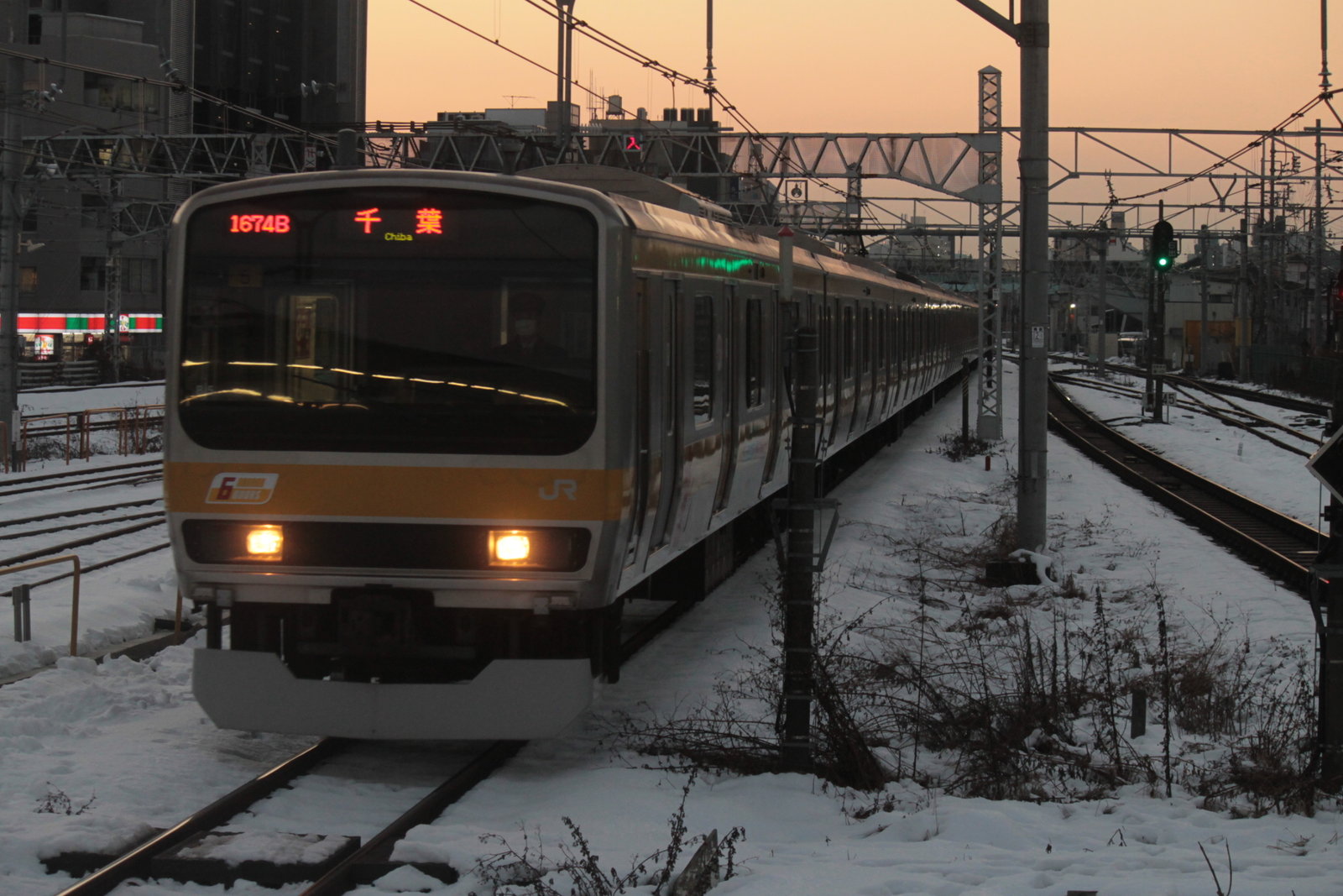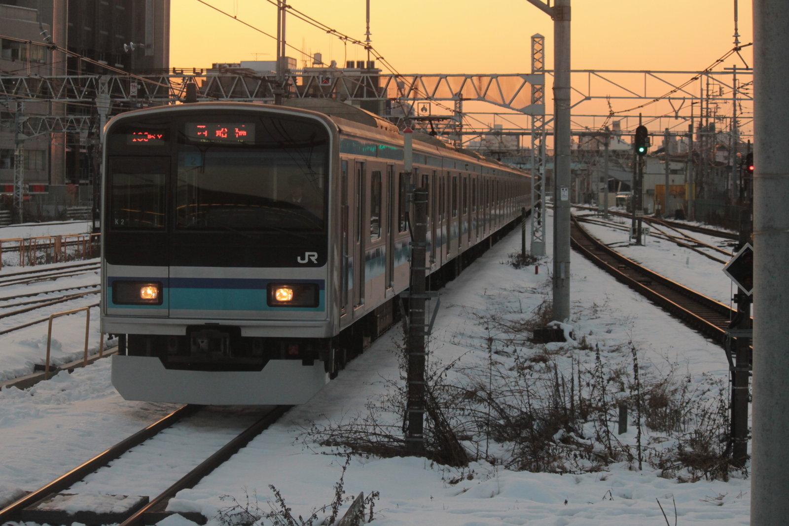 今回、舞台になるのは中野駅での撮影シーンだ。写真の特徴として、夕暮れの時間帯であったので、背後には夕焼けと雪の中を走る姿を中心に撮影をしている。さて、本日1月24日から4日間、AKB48リクエストアワーセットリストベスト100 2013が東京ドームシティホールで開催をされ、それに合わせた企画を行う。そのタイトルはズバリ、JRに存在をするAKBとHKTの運用だ。今日はその車両をまずは、AKBという形で特集をする。過去にAKB48の東京ドームでのコンサート時には、京成電鉄に存在をするAKB、HKTその他を特集をしたが、その第2弾をここでは行うことにした。