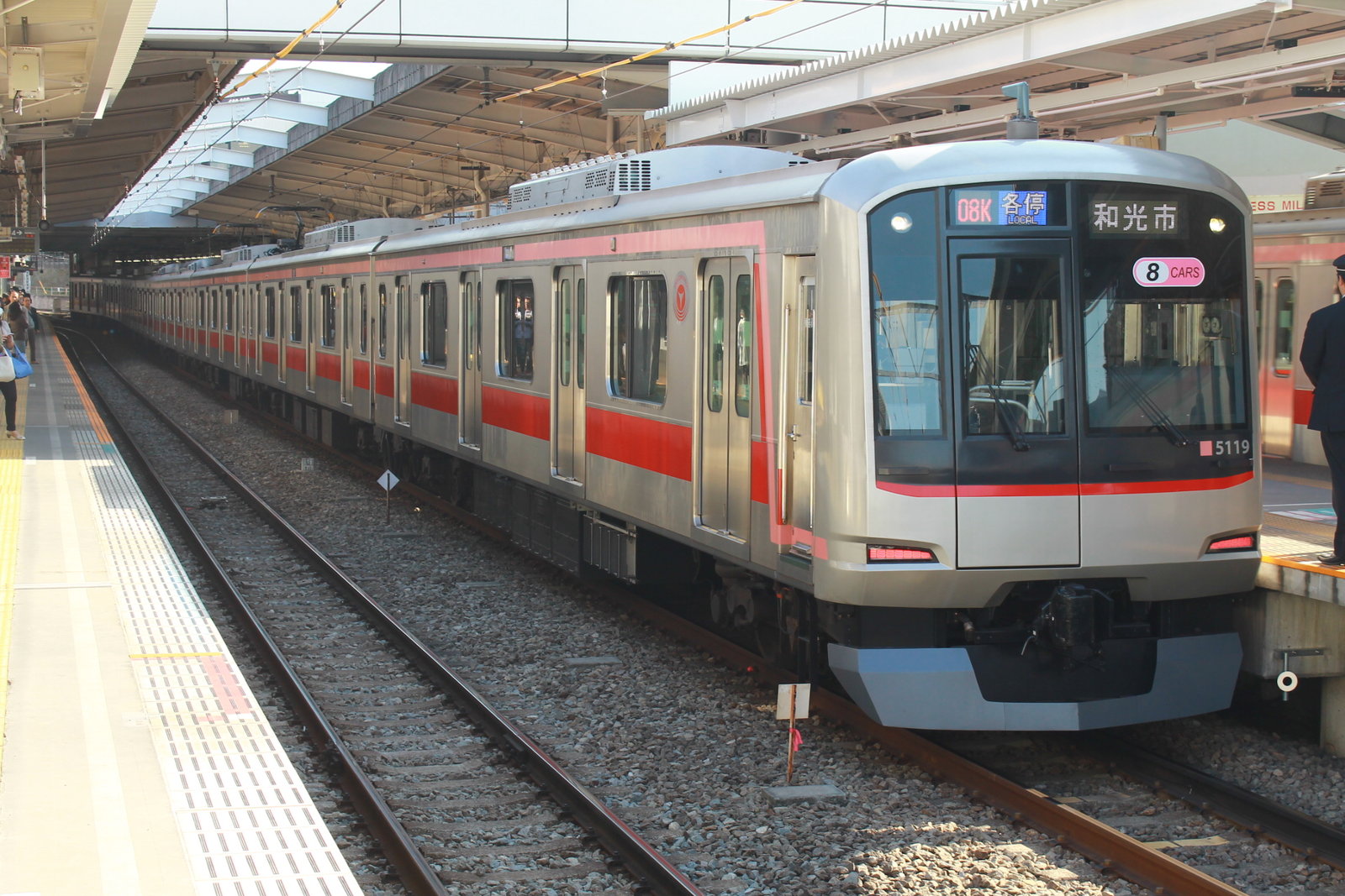横浜方面の急行も5050系だった。8両編成の列車には、8Carsというシールが貼ってある。東急の車両は5050系と横浜高速鉄道のY500系が使われる。