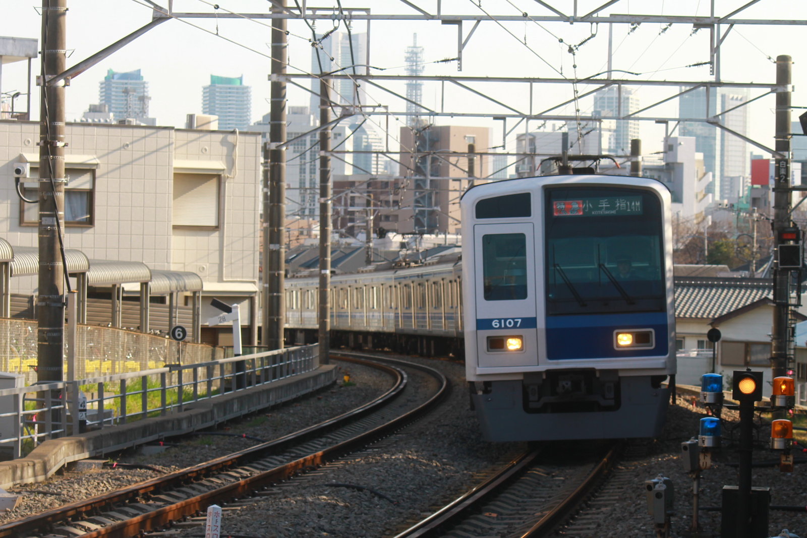 今日、最大のメインは、西武6000系の東急線特急運用だ。行き先は特急小手指行きだ。小手指も「こてさし」であるが難読駅名かもしれない。場所は所沢市の西側に当たる。所沢といえば、何といっても埼玉西武ライオンズの本拠地で、オードリーの春日氏の出身地などでも知られている。まさか所沢と横浜が直結をしてしまうなんて・・・。横浜駅では京急線と西武線が乗り入れるのか。京急と西武は共同で組んでラッピング列車などを走らせているので、これがついに実現をしてしまったようだ。横浜の街をバックに西武が走るのはまるで夢物語のようだ。