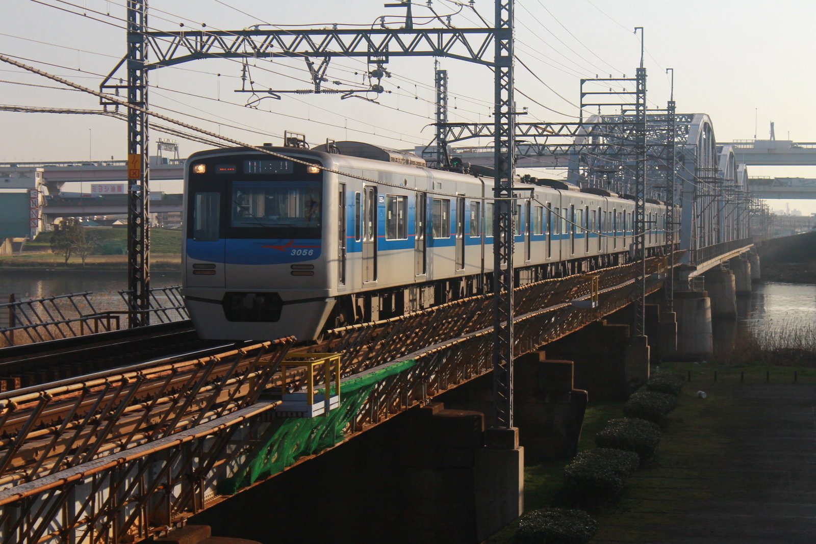 まず、通勤特急に3050形の3056Fが来た。今や本線運用の3050形は珍しくないが、今でも明るい時間帯に本線の荒川を越えるのは、違和感を感じざるを得ない。この時間帯の京成線は高校生の時代に一番よく乗っていたので、この時間帯の上り線は当時を思い出してしまうようだ。
