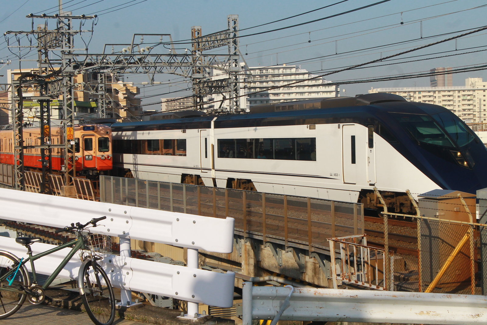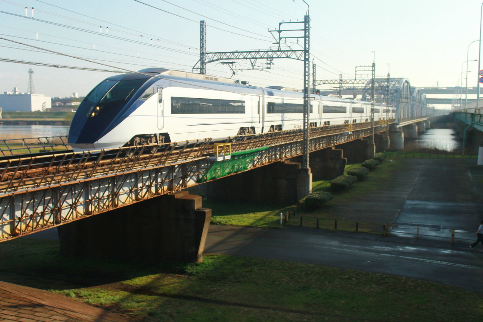 京成線と東武本線の並行をする関屋駅の先では、半蔵門線の8000系やスペーシアと赤電の並びが見られたかもしれない。余談であるが、3月19日は半蔵門線の押上延伸から10周年の記念の日で、東武本線(当時は東武伊勢崎線)と乗り入れを開始をしたのだ。10年前から半蔵門線の8000系や08系、東急田園都市線の8500系などは荒川を越えるようになった。写真は撮影後に荒川の橋から歩いているときにやってきた東武の200系特急りょうもう。