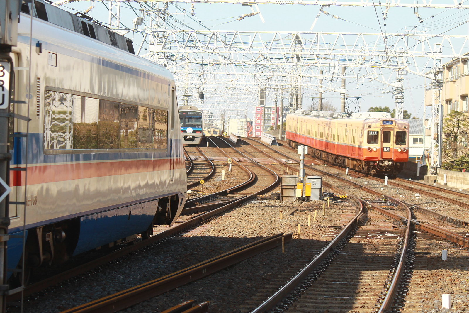 北総線のダイヤ乱れの影響で、羽田空港行きで走っていた列車が押上に行き先変更になった。これが7260形であった、何だか気の毒なような気がする。その下はアクセス特急で使われた京急600形のブルースカイトレインだ。