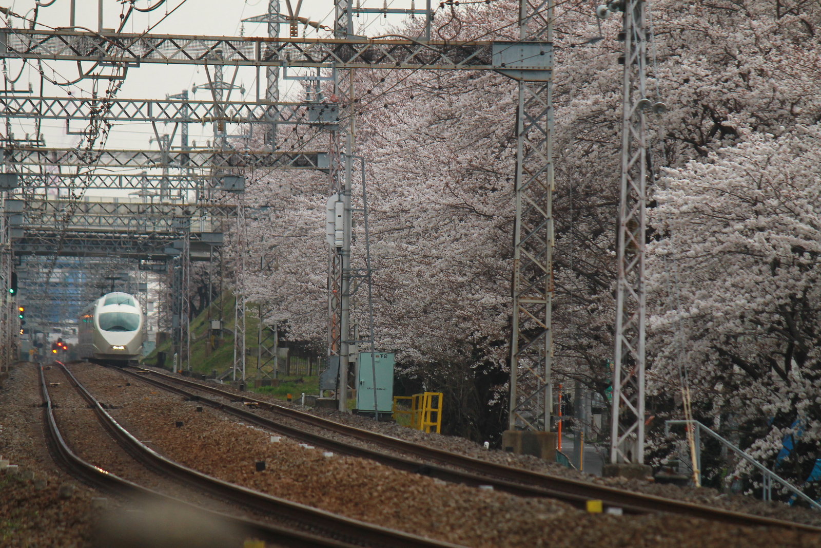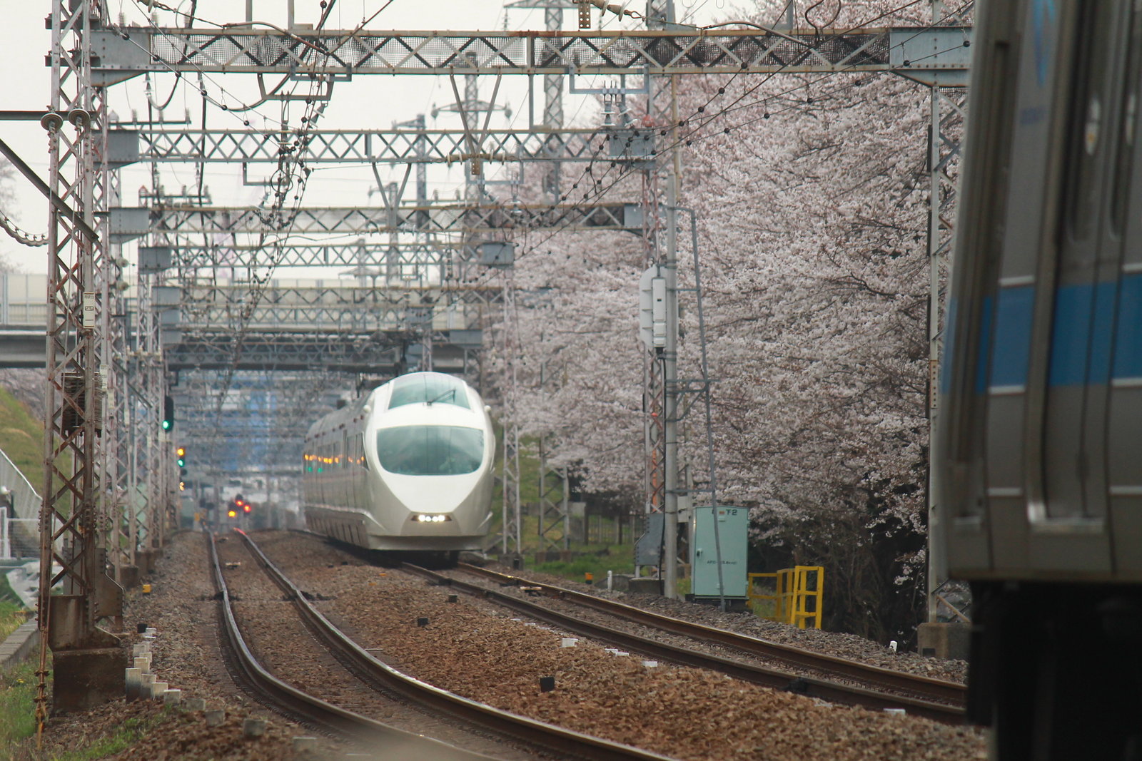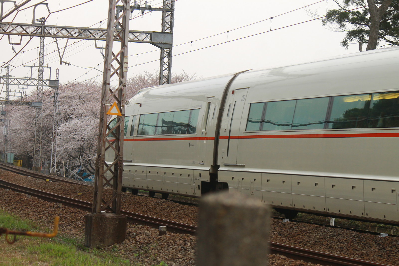 しかし、上り線には回送列車として別の車両が来た・・・よりによって、VSEが桜並木の前を通過する前に・・・・完全に被ってしまう・・・・
