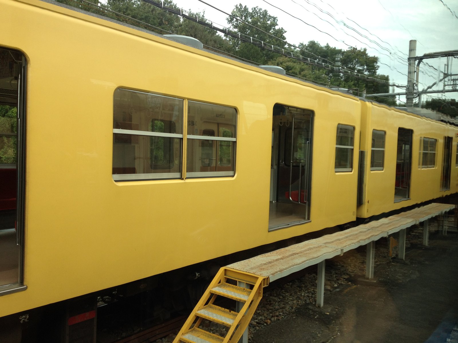 帰りも新所沢駅までの臨時列車に乗る。車両は30000系だった。帰りには洗車の線路を通る演出もあり、水をまいてくれた。また、社員の多くが、「ありがとうございました」と挨拶をした。室内から撮影をした2000系だ。水をまいたところから撮影をしたので、ドアが少し歪んで見えるようにした。