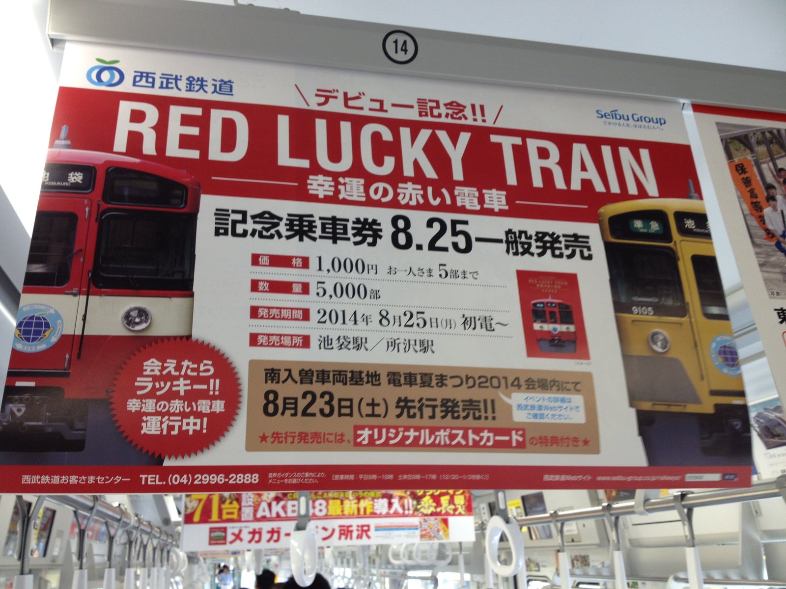 こちらは20000系の妖怪ウオッチのヘッドマークを付けた車両だ。この車両が休憩車両になっていた。20000系のうち50番台は8両編成になっている。妖怪ウオッチは特に小学生を中心に大人気で、現在テレビ東京で金曜日にアニメが放送され、今年の西武鉄道のスタンプラリーは妖怪ウオッチをテーマにしている。私はこれで初めて妖怪ウオッチを知った。