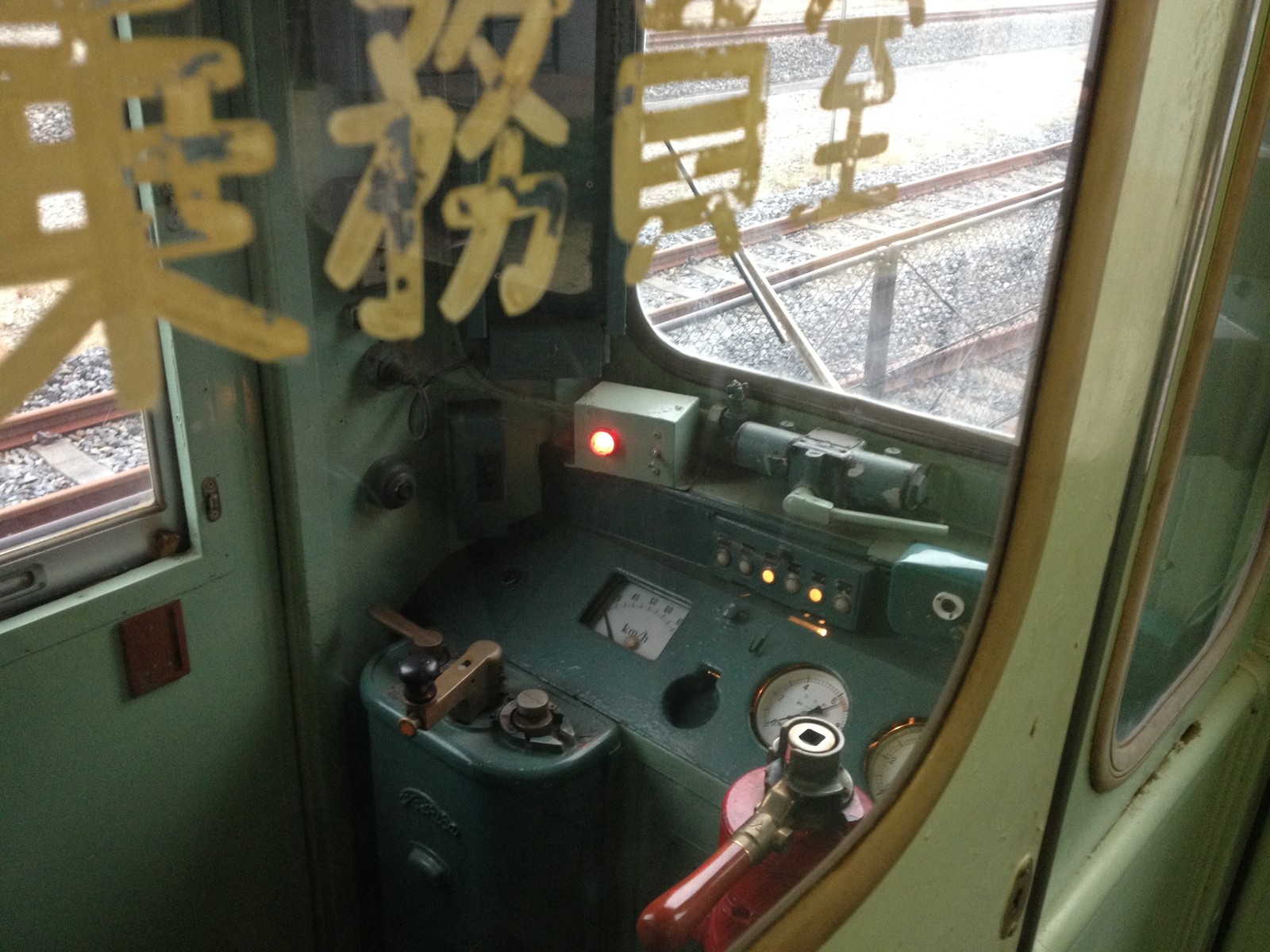こちらが運転台だ。ハンドルとブレーキ弁があるのは昔の車両だと感じる点がある。室内ではエンジンの起動もあったが、甲高い音を出し、今のような静音の気動車に比べれば騒がしかったが、これが昔の気動車であることも忘れてはならない。