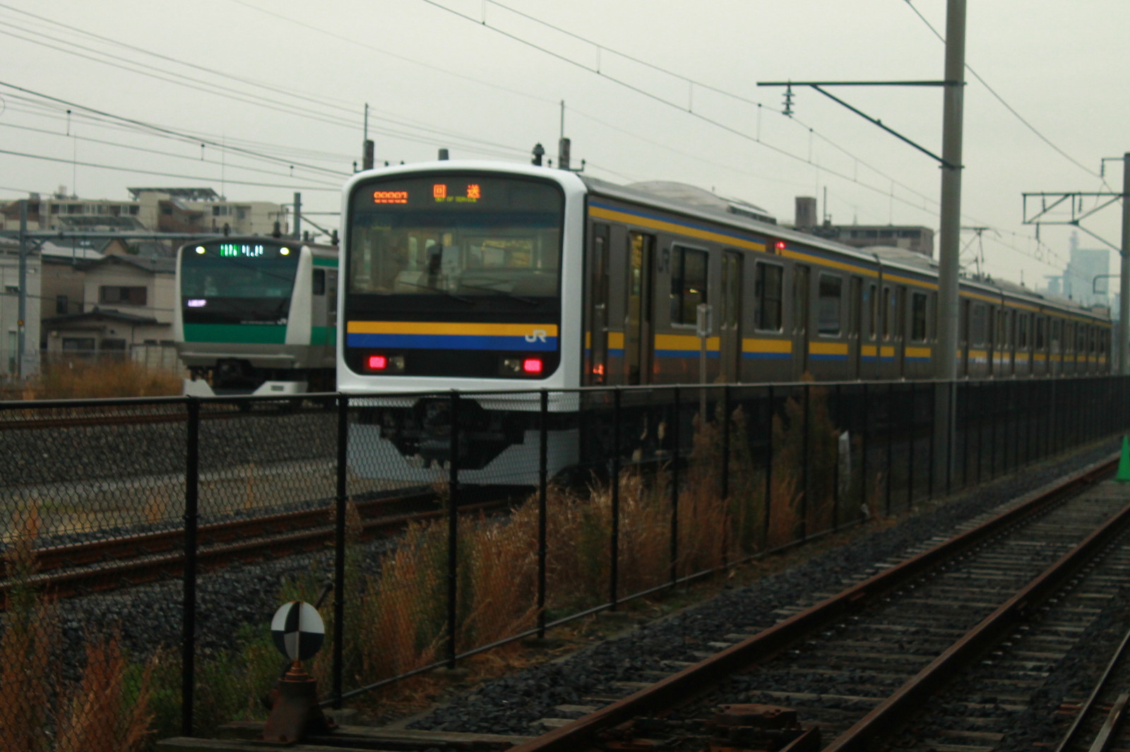 この鉄道博物館の付近には千葉県内で走る209系も試運転のために来ていた。埼京線のE233系との並びも撮ってみた。