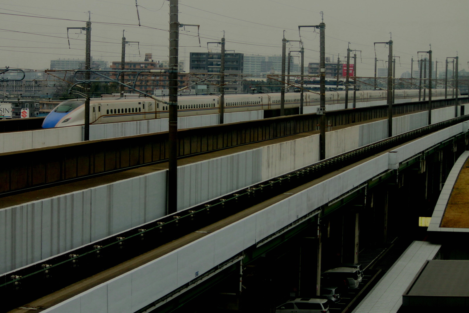 そして屋上の展望デッキへと向かう。ここでの目的は新幹線や埼玉新都市交通ニューシャトルの撮影ができる場所だ。これはE5系とE6系の連結車両だ。