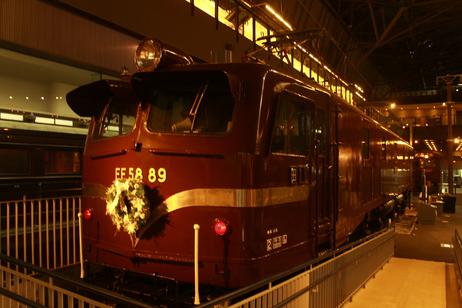 今日はEF58形の89号機も表にみずほのヘッドマークを付け、裏はクリスマスの装飾を飾っていた。この車両も往年の名車両だ。さまざまなところにクリスマスらしさを感じさせた。