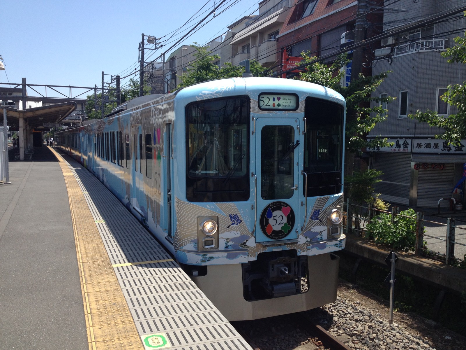 東伏見駅は2面4線の駅でこの駅であれば、もしかしたら撮れるかも知れないと思い撮影をした。この列車は西武新宿を出ると西武秩父まで客扱いをしない。この駅ではおそらく急行などの待避があると思い撮影をした。やはりこの駅で停車をした。幕には「52という数字とトランプのスペード・ダイヤ・クローバー・ハートが書かれている。トランプは52枚だからこれに合わせているのかもしれない。