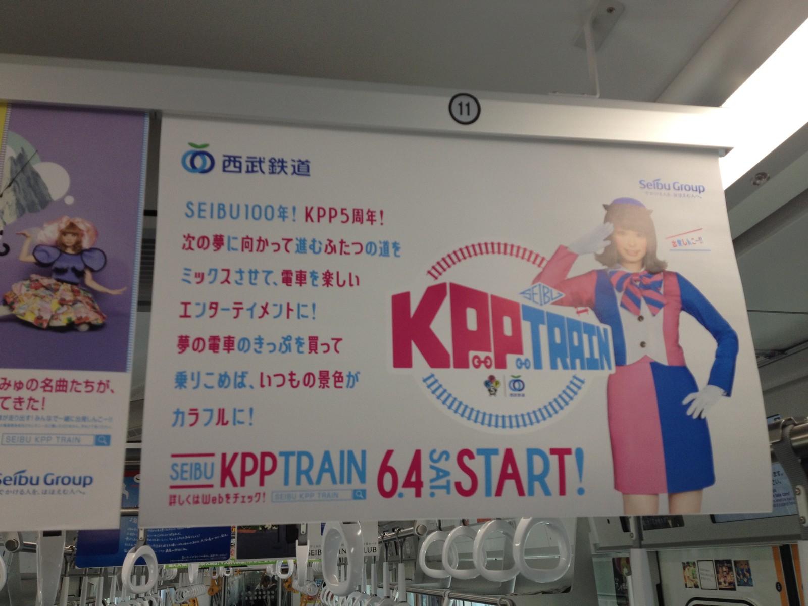 さっそくきゃりーぱみゅぱみゅの特別列車の広告が、西武新宿線では車内の広告とLCDモニタービジョン、池袋線ではLCDモニタービジョンに出ていた。駅のモニタービジョンでも紹介をされていた。運転をされるのは主に池袋線で、6月4日から9月末まで走る予定だ。果たしてどの車両がどのような色で登場をするのか。