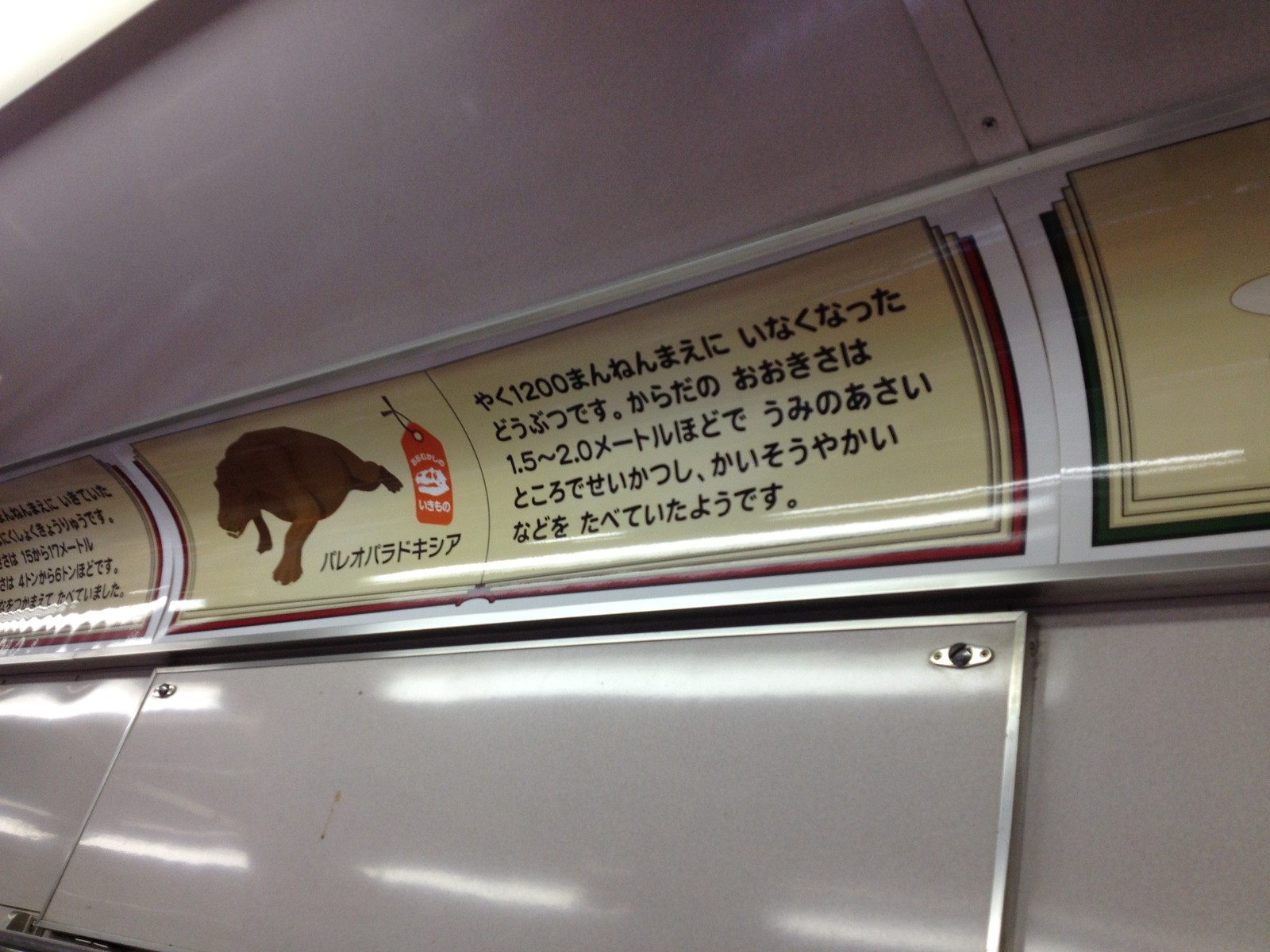 長瀞駅からは三峰口駅へ行く。その際に乗ったのは、7500系の秩父の動物などをフューチャーをしたフルラッピングの車両だ。車内ではパレオエクスプレスの名のもとになったパレオパラドキシアなどの紹介もしている。