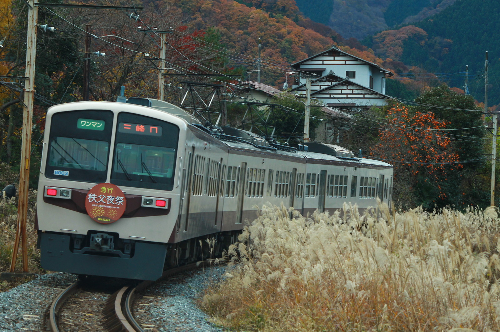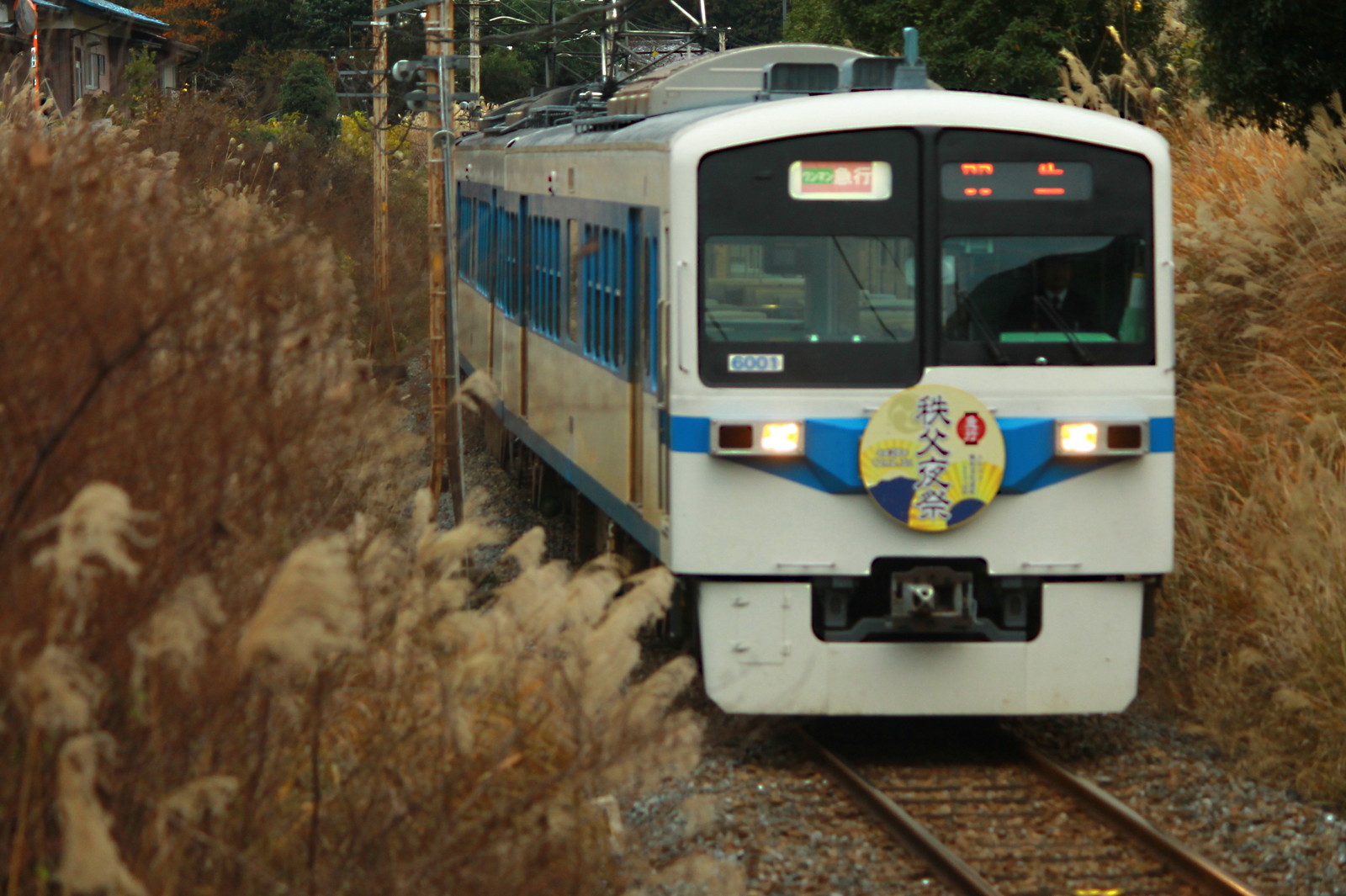 SL撮影のリベンジは隣の白久駅にした。この辺りは昔は秩父郡荒川村だった場所だ。6000系の秩父夜祭のヘッドマーク付き車両をここでは後追いで撮影をしたのだ。すすきに柿にそして秋の紅葉に、まさに秋というシチュエーションにはぴったりの撮影地だ。
