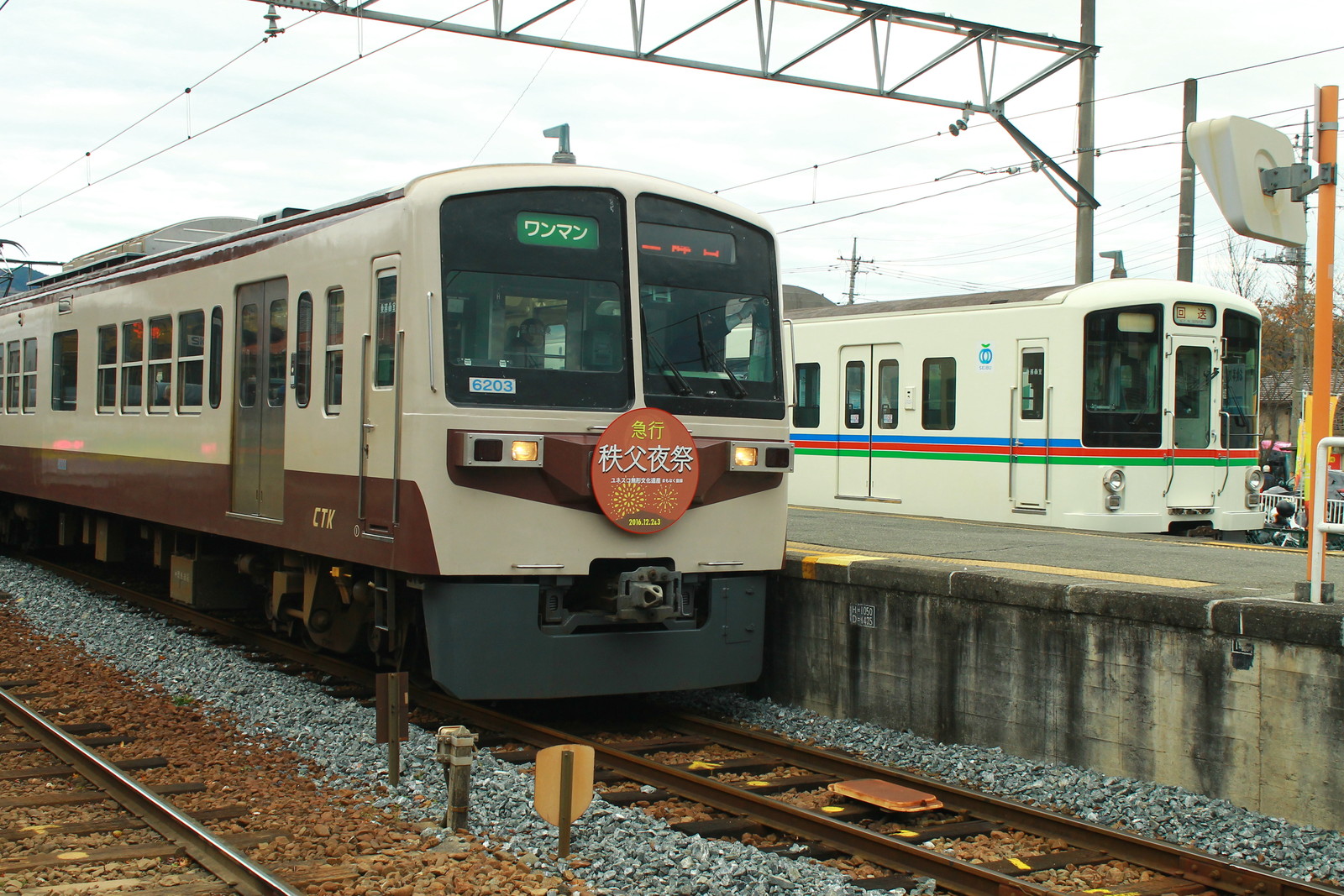 長瀞駅の3番線には西武の4000系も止まっており、西武の新旧車両がここでは顔合わせをする。西武4000系も足回りは101系と同じものなので、西武101系の足回りを使った車両がここで並んだ。