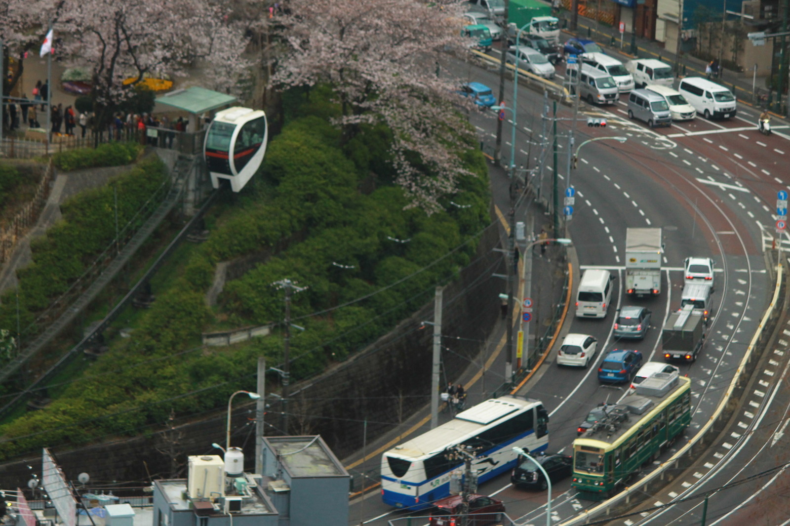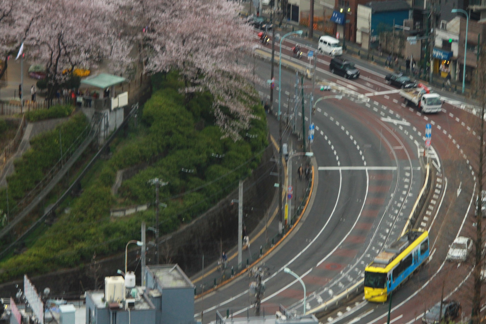 まずは都電荒川線の写真を紹介をしよう。飛鳥山公園のミニモノレールと高速バス、そして7700形と桜だ。7700形になってからは初めての桜かもしれない。高速バスはおそらくであるが東北自動車道からの新宿へ行く路線ではないかと思われる。新宿への路線は王子駅前に停車をする。なぜならば王子駅に近い王子北インターチェンジで高速道路を使うからだ。