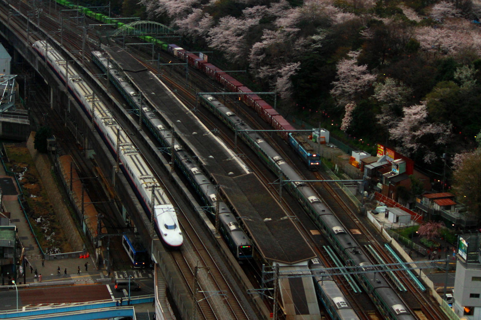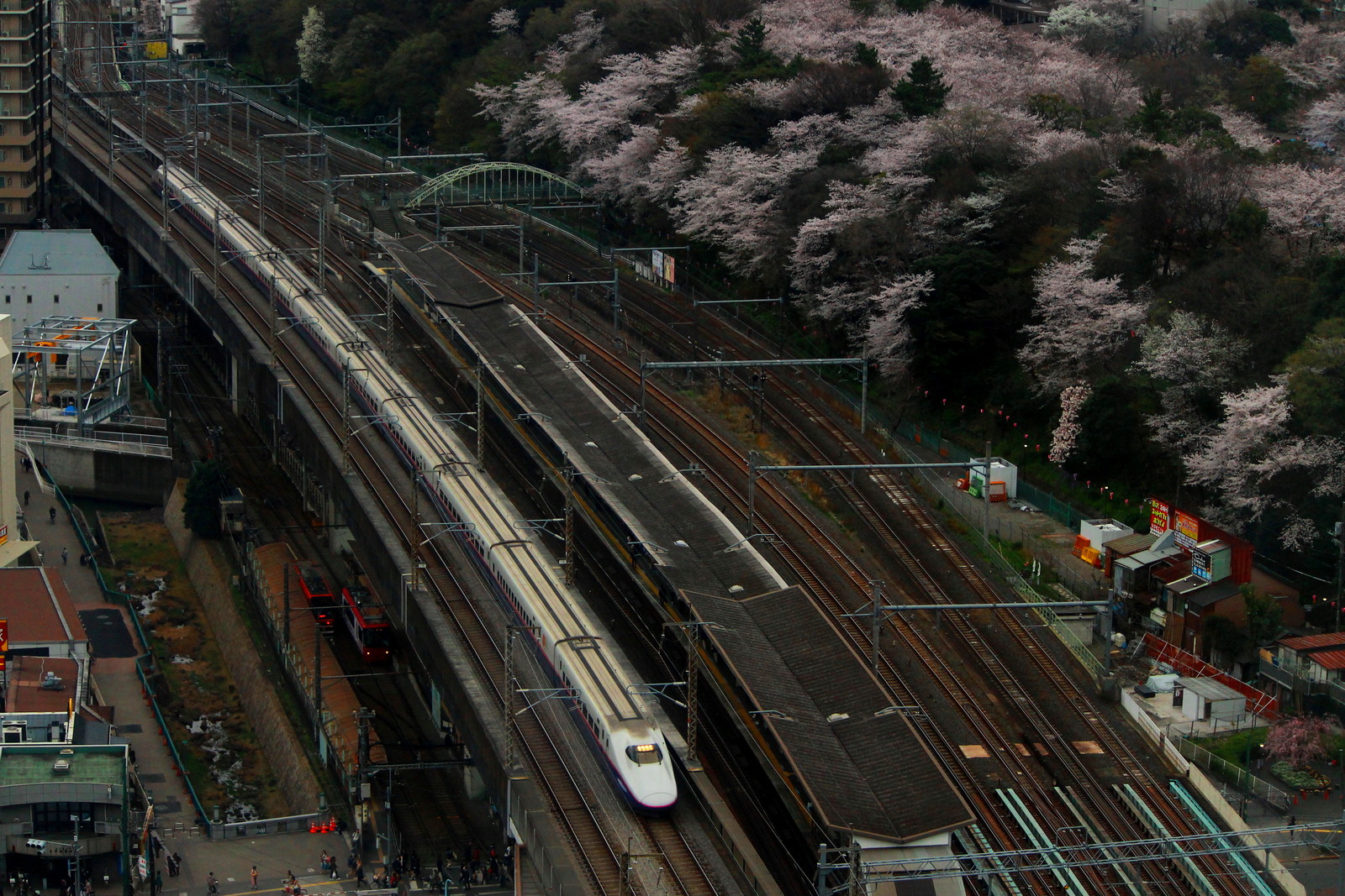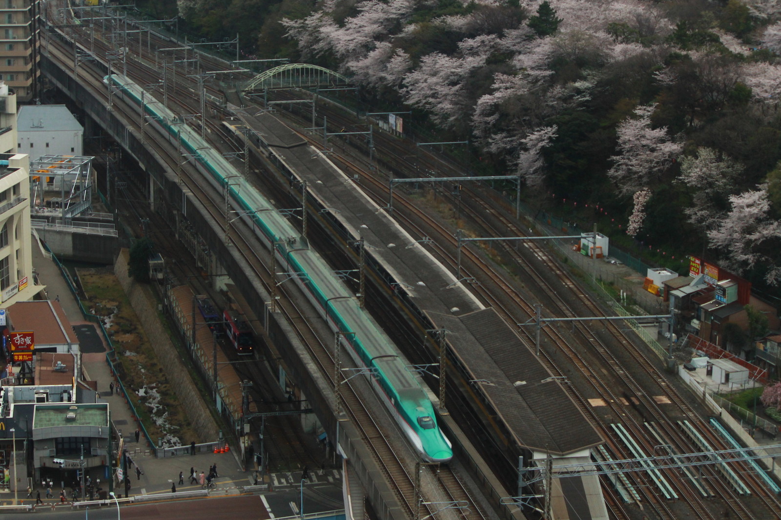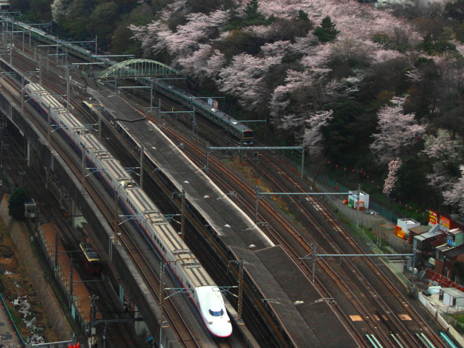 E2系にE5系に東北新幹線の主力たちがかけぬく。東北地方はまだまだ桜の時季は遅いかもしれない。岩手の盛岡や青森の弘前などの桜の名所もこれから桜が咲く。早い花見かもしれない。北の方へ行けば桜が見ごろになるかもしれない。