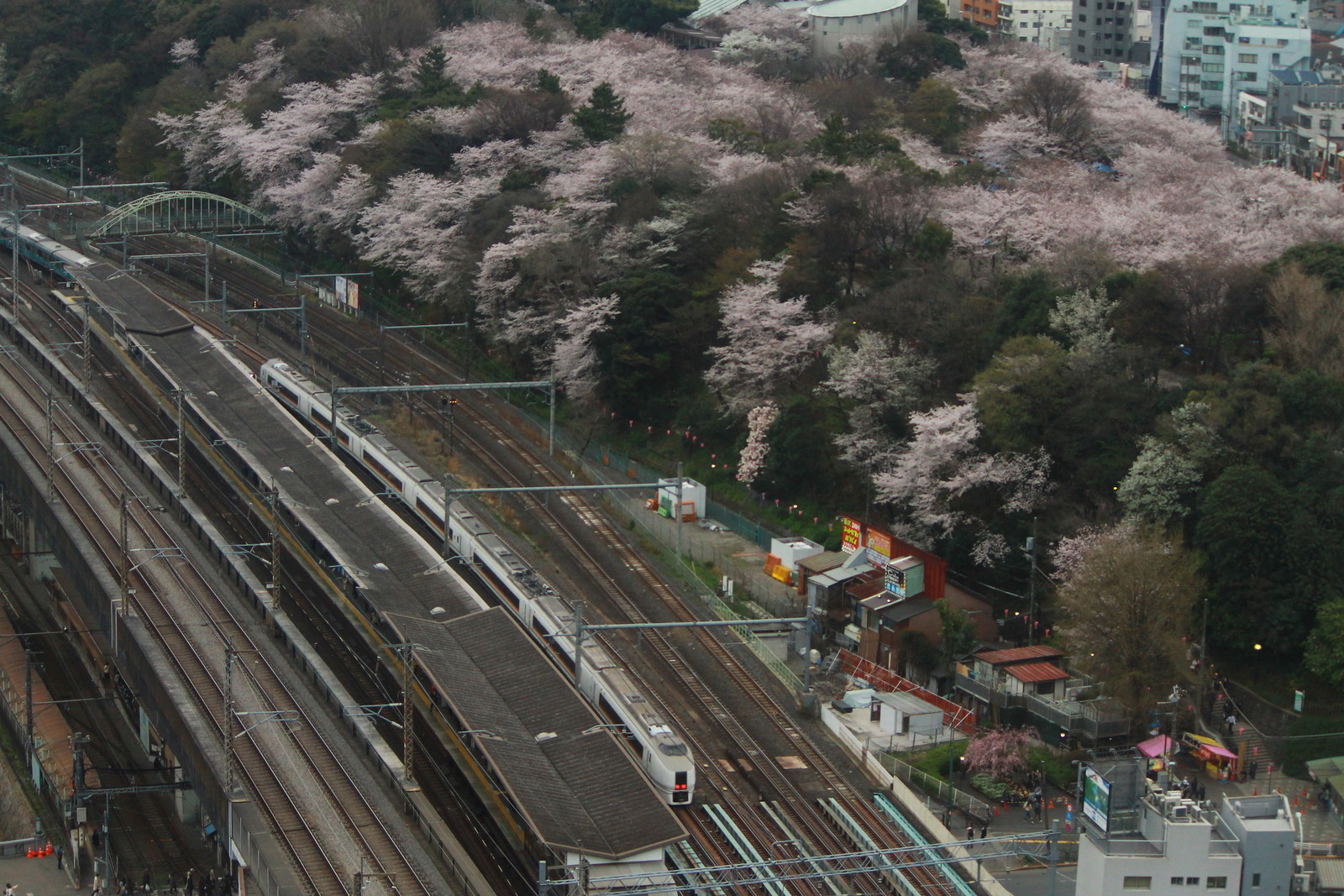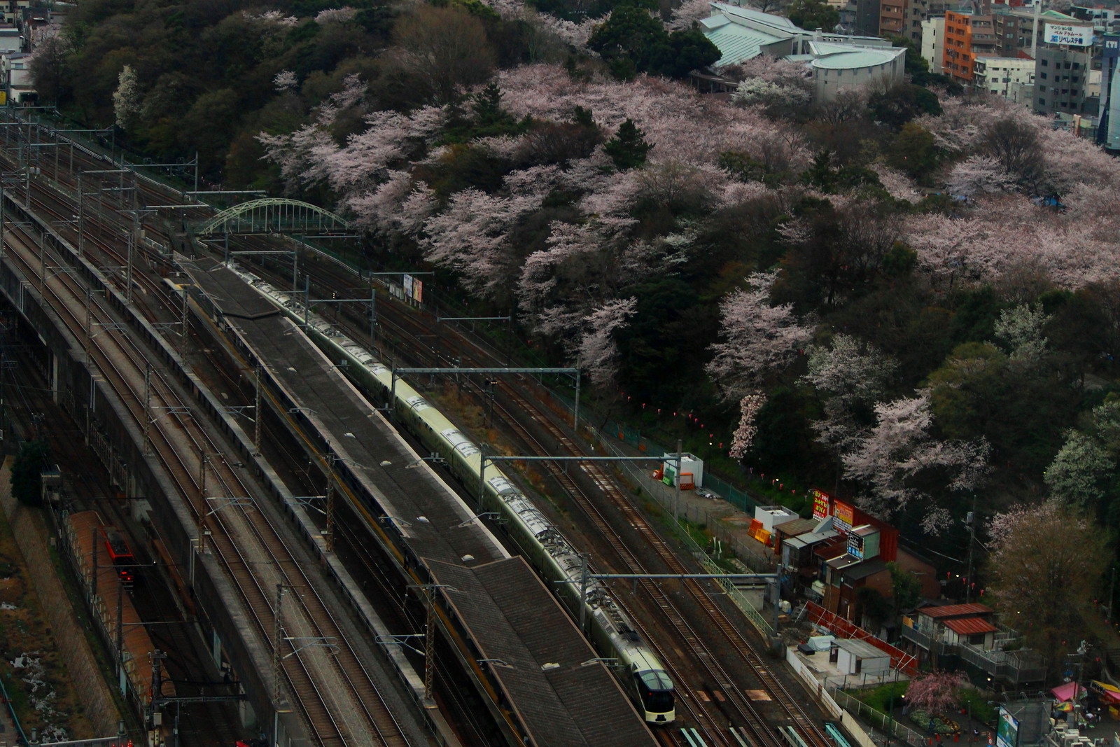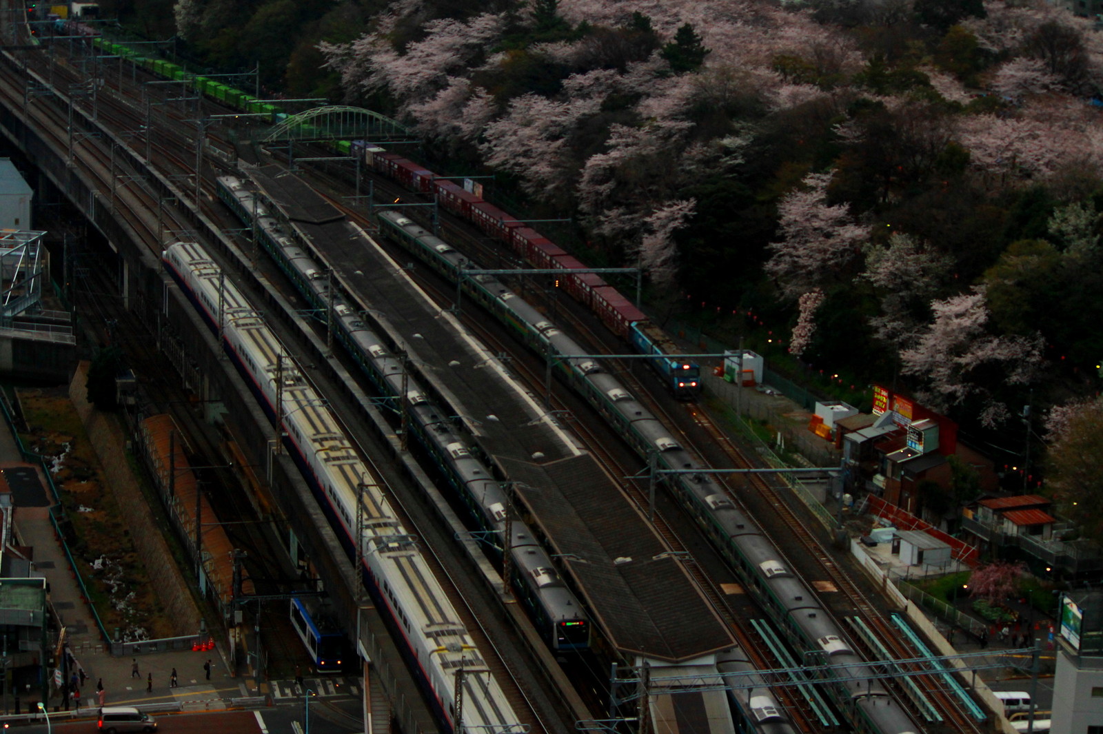 今回撮影をした写真で最も圧巻だったのはこちらだ。新幹線のE4系が走り、京浜東北線が停車をし、宇都宮線・高崎線の上野・東京方面の線路にE231系が通過をし、湘南新宿ラインの走る貨物線に貨物列車が通過をしている。それだけでなく、都電荒川線のホームには青い8900形が走っている。地下を走る南北線以外の王子駅周辺を走る列車を写すことができまさに圧巻の一言に尽きる。これが王子の北とぴあから撮る鉄道車両の最大の魅力なのだ。桜祭りにいろいろな車両が集結をしているようだ。ネタだけでない王子の撮影の最大の魅力かもしれない。