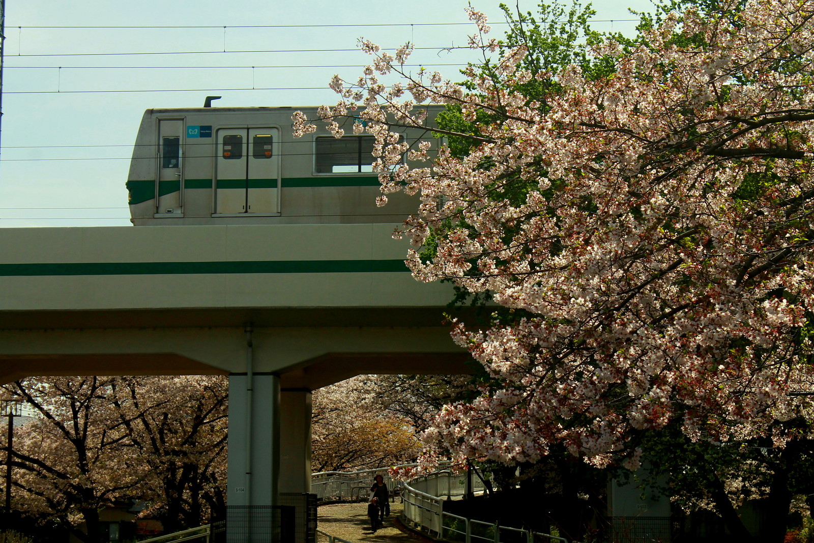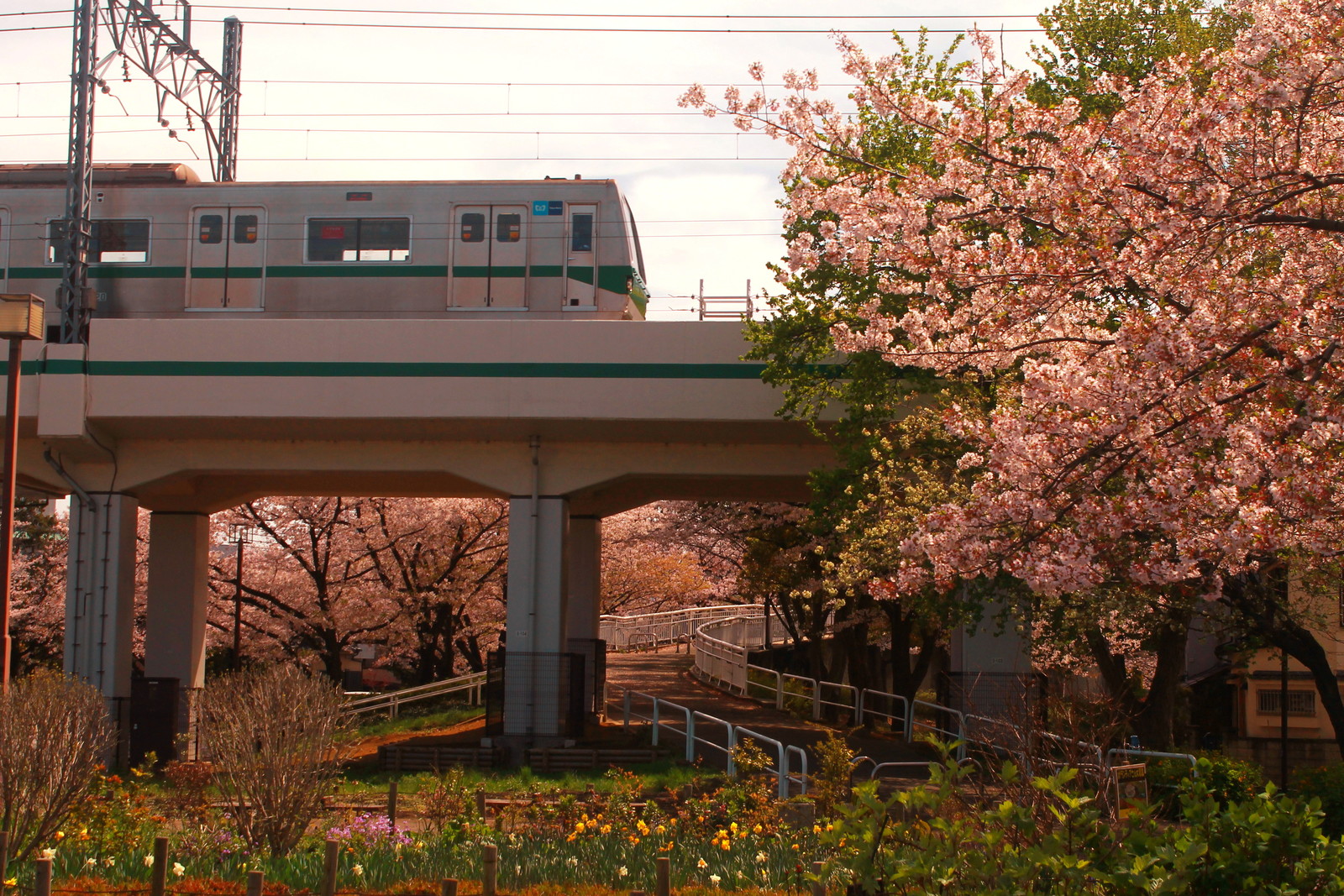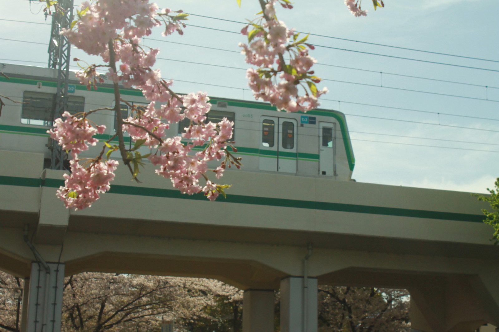 まずはこの区間の主の05系の3両編成と桜の写真だ。東綾瀬公園の桜と合わせてみた。この時季が桜の満開の時季だったからだ。