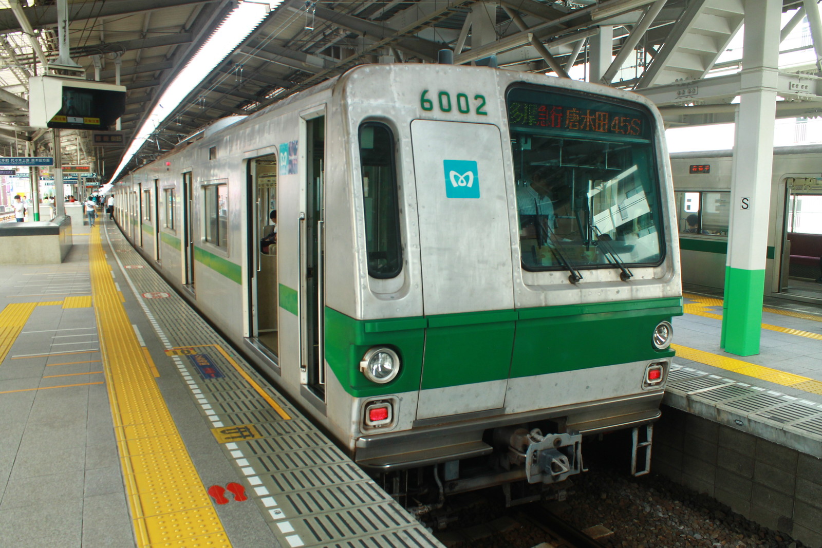 そして6000系がやってきた。まずは6102編成だ。これよりも後に出た車両の多くが廃車になる中、この6102編成は今でも千代田線の6000系として走っている車両だ。ドアの窓が高い位置にある。