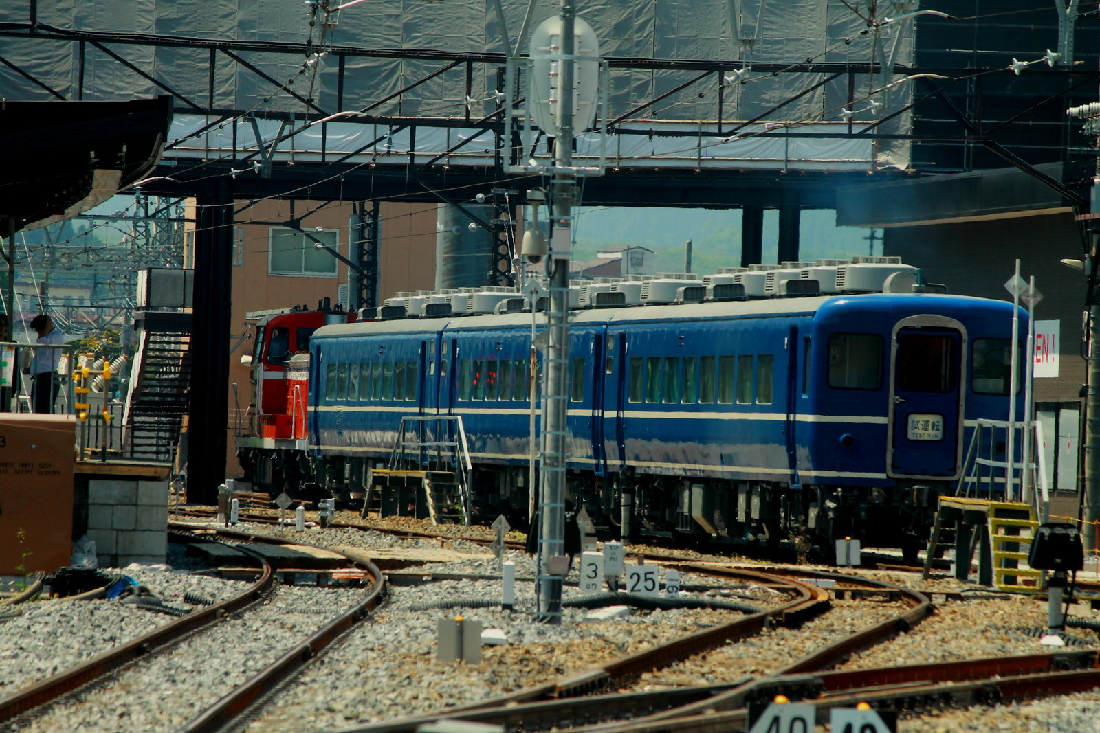 試運転の幕の客車も撮影をしてみた。今や14系などの客車は数自体が少ないが、東武が新たに走らせることになるとは!!東武のこの客車はJRと同じく、リクライニングシートとなる予定だ。何か急行はまなすのような感じになるな。