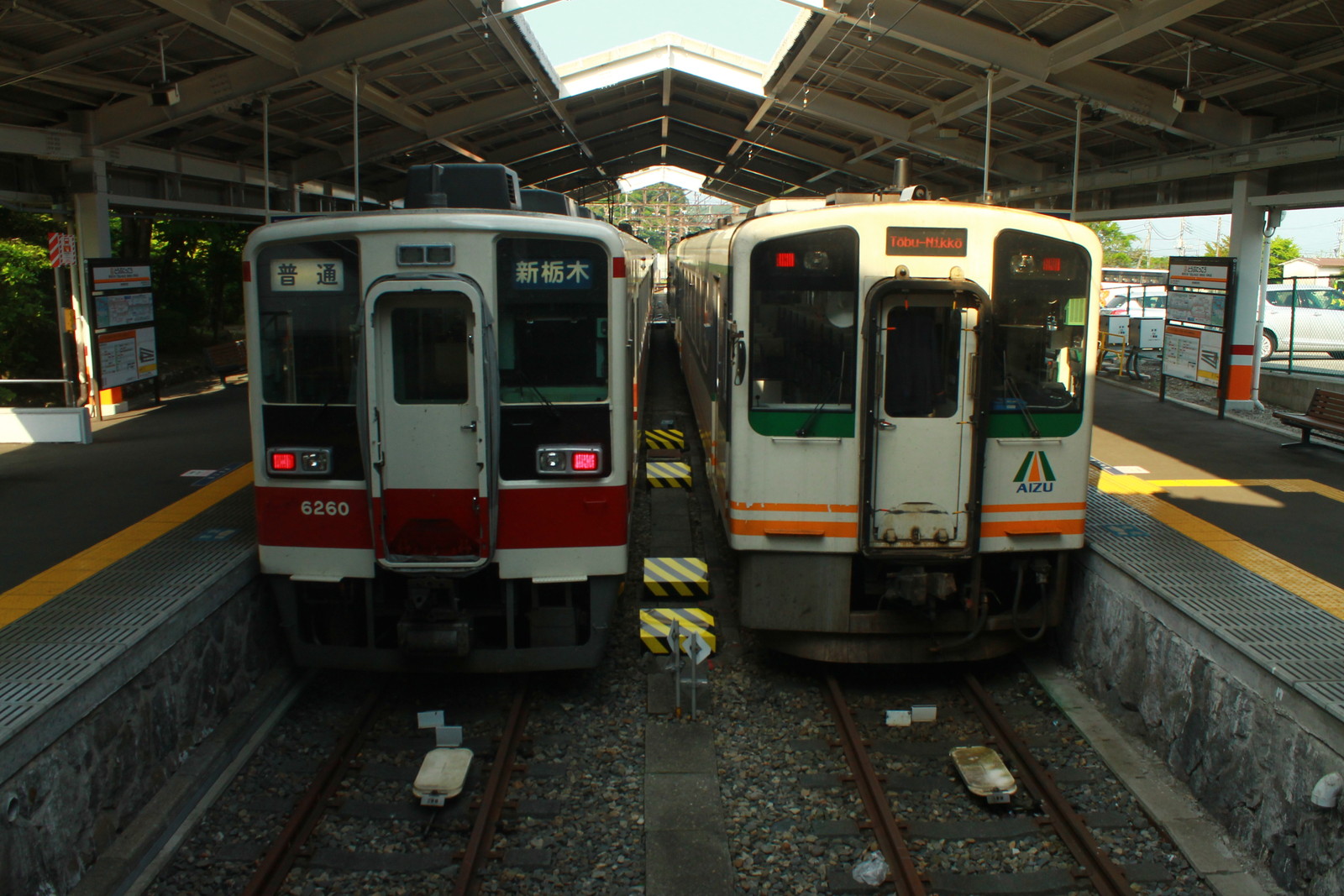 大桑駅からは東武日光行きの普通列車に乗るが、やってきたのは会津鉄道の気動車だ。数年前から会津若松発の会津鉄道・野岩鉄道経由の東武日光行きの普通列車が走っている。東武鬼怒川線は私鉄では珍しい気動車が走っているのだ。運転手は、会津鉄道の運転手が乗り入れてくるそうだ。