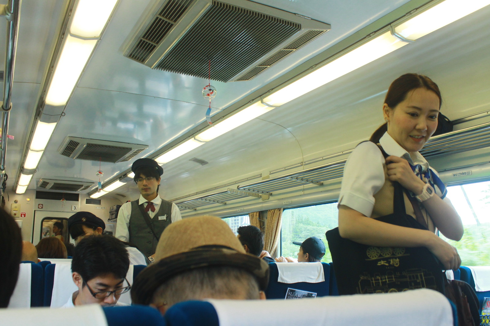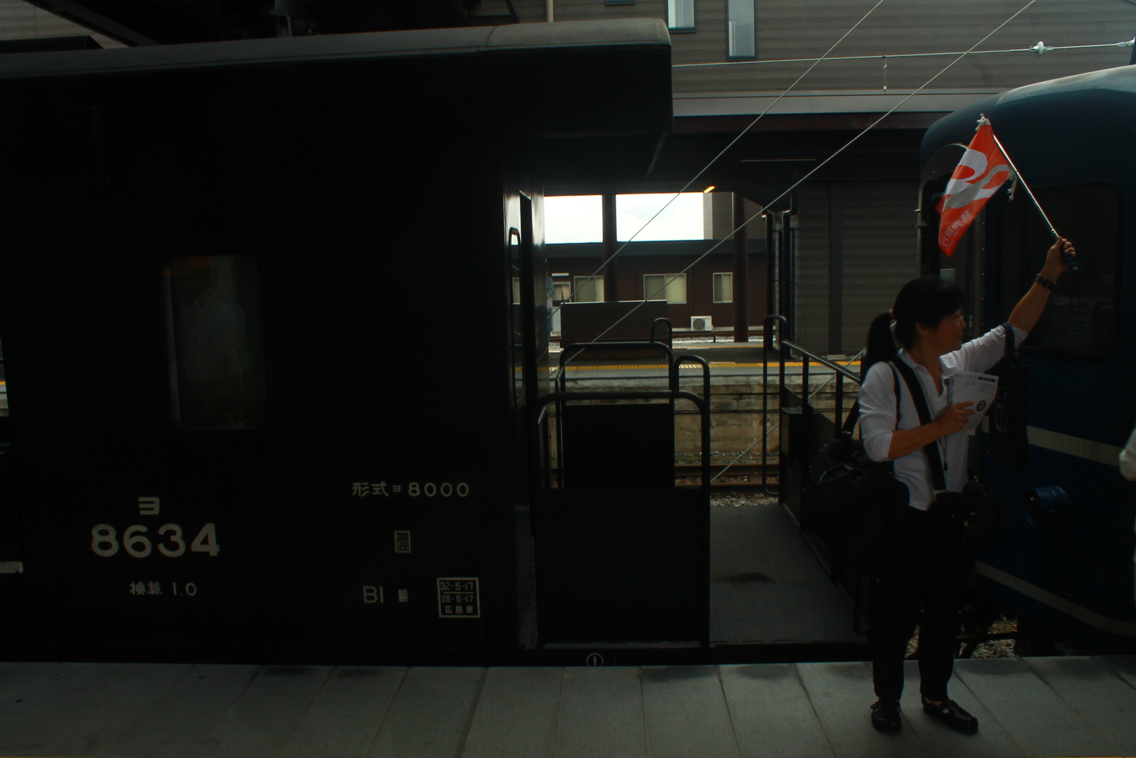 下今市駅では、スタッフの方らが整列をしている。なにかトワイライトエクスプレスなどと似ている。このSL大樹にはサービススタッフなどが乗り込むようだ。