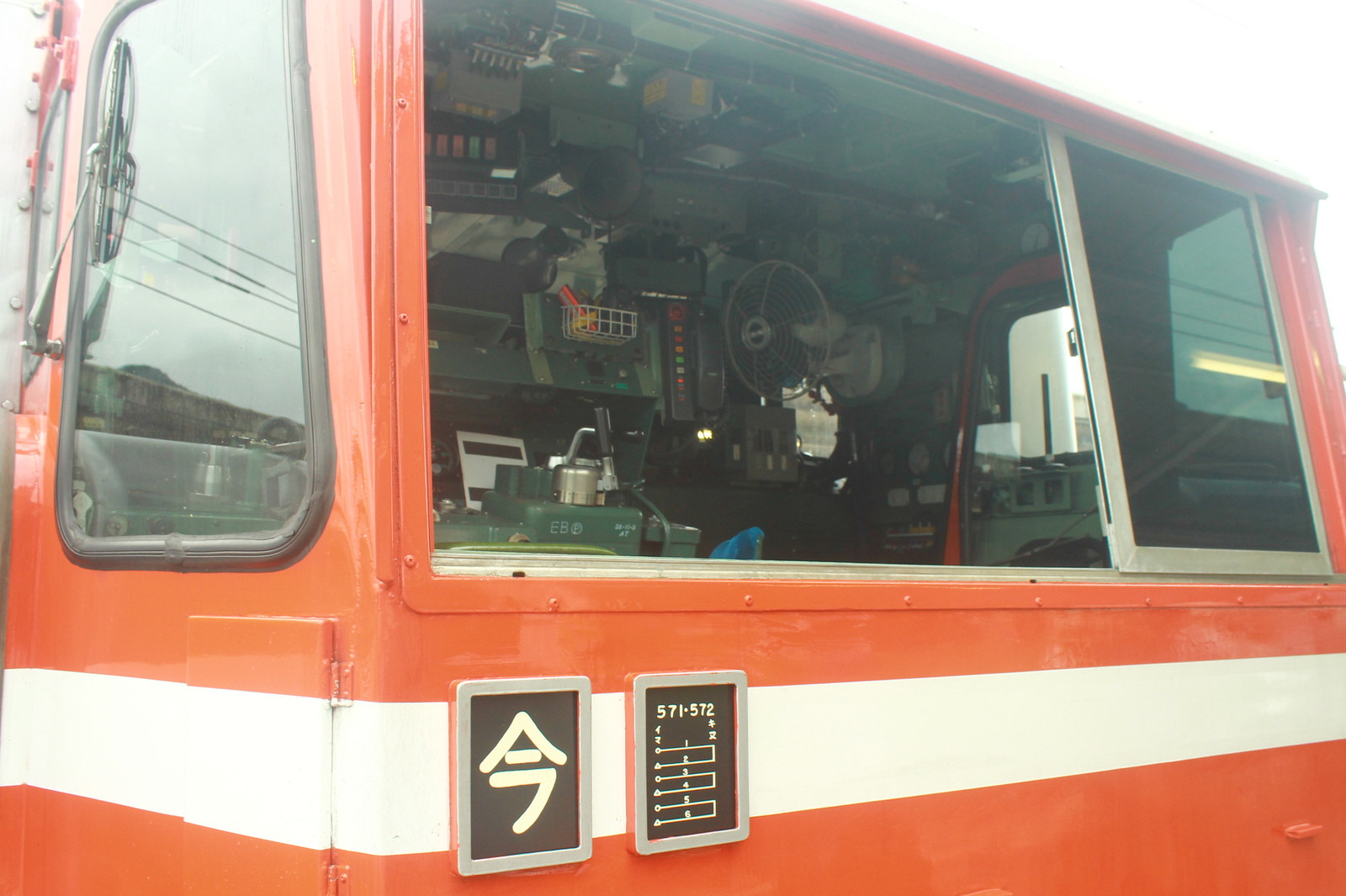 ディーゼル機関車には下今市機関区の「今」の字も書かれている。さらにダイヤも貼られている。