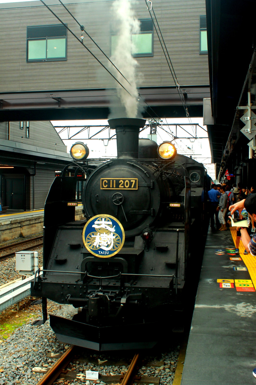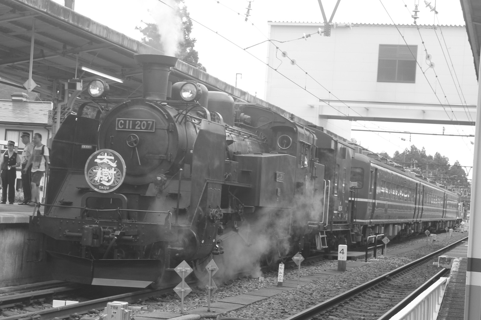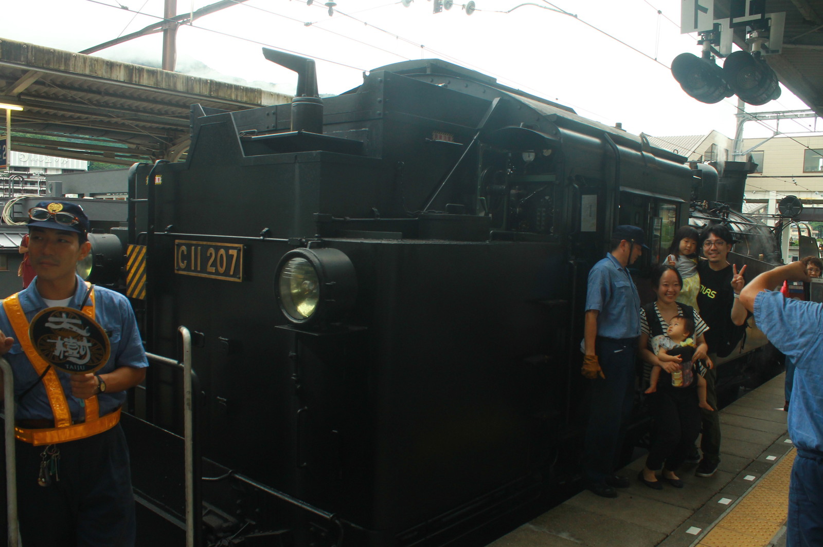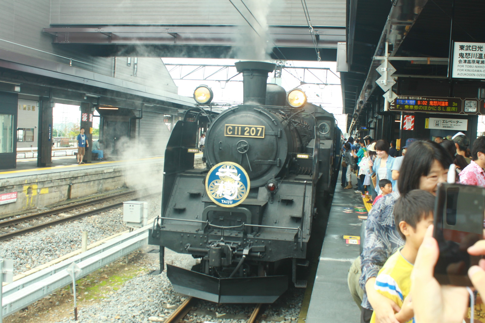 下今市駅の側線には、SL大樹の車両が停車をしている。C11形207号機を先頭車に車掌室、客車3両とディーゼル機関車という組み合わせだ。ついにこちらを待っていた。