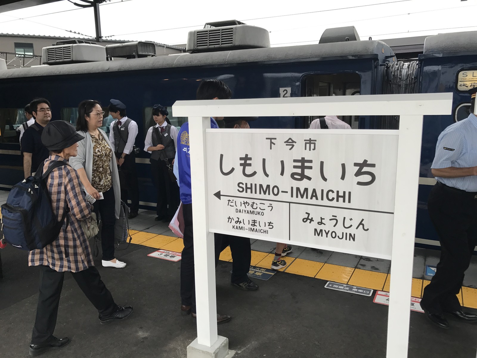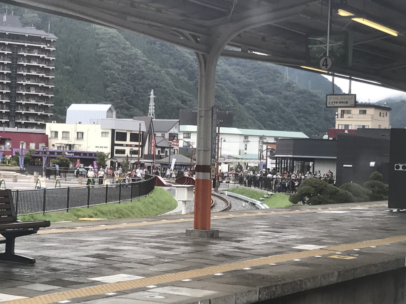 鬼怒川温泉に向かうにつれて、風景が山間になっていく。しかし客が多く、サービスやおもてなしが多くて、少し落ち着かない感じだった。途中、7月22日に開業をした東武ワールドスクエア駅に停車をする。この駅は名前通りの駅だ。